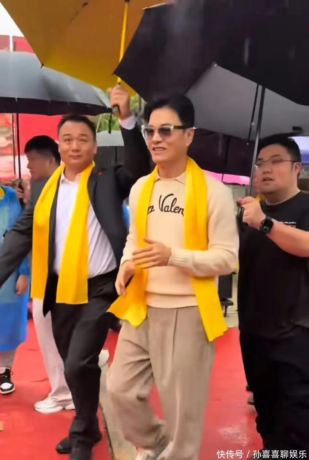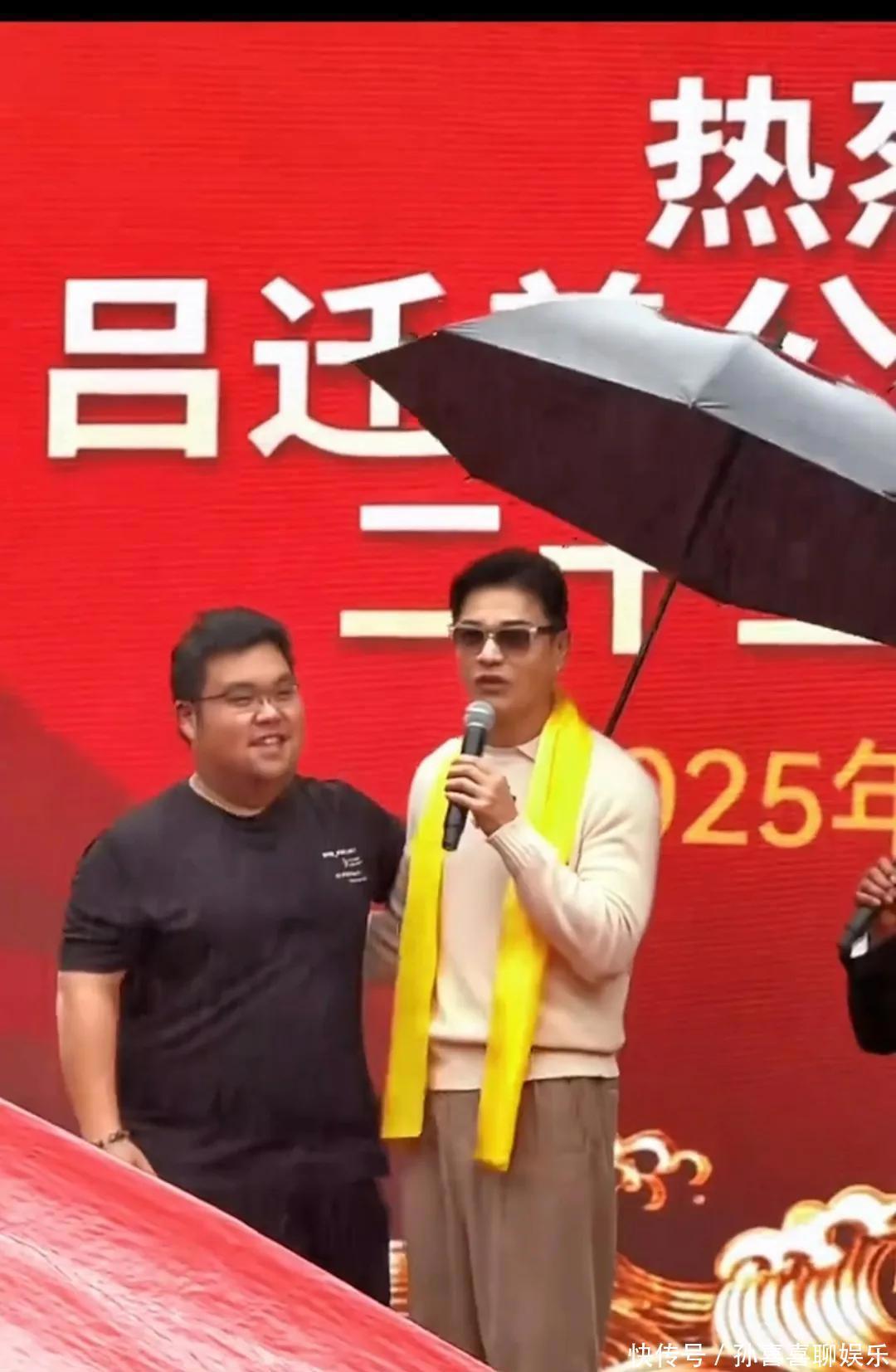 视频中清晰展现出吕良伟广受乡亲们喜爱,他一踏下车便被众多乡邻簇拥着合影。佩戴墨镜的他热情挥手回应,显得格外亲切!而他的儿子吕善扬则从始至终紧跟其旁,为父亲撑伞遮风挡雨。